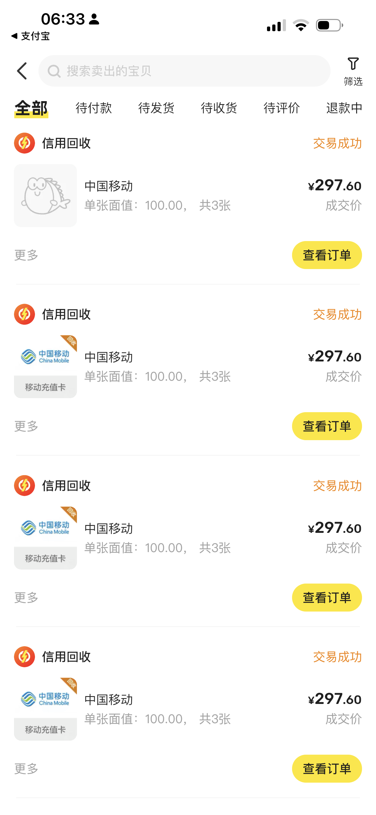 比如你中国移动面值100元的充值卡,现在闲鱼回收价格99.2元,我这里拿货价85元。也就是你在我这拿这张卡,再到闲鱼回收可以赚14.2元,